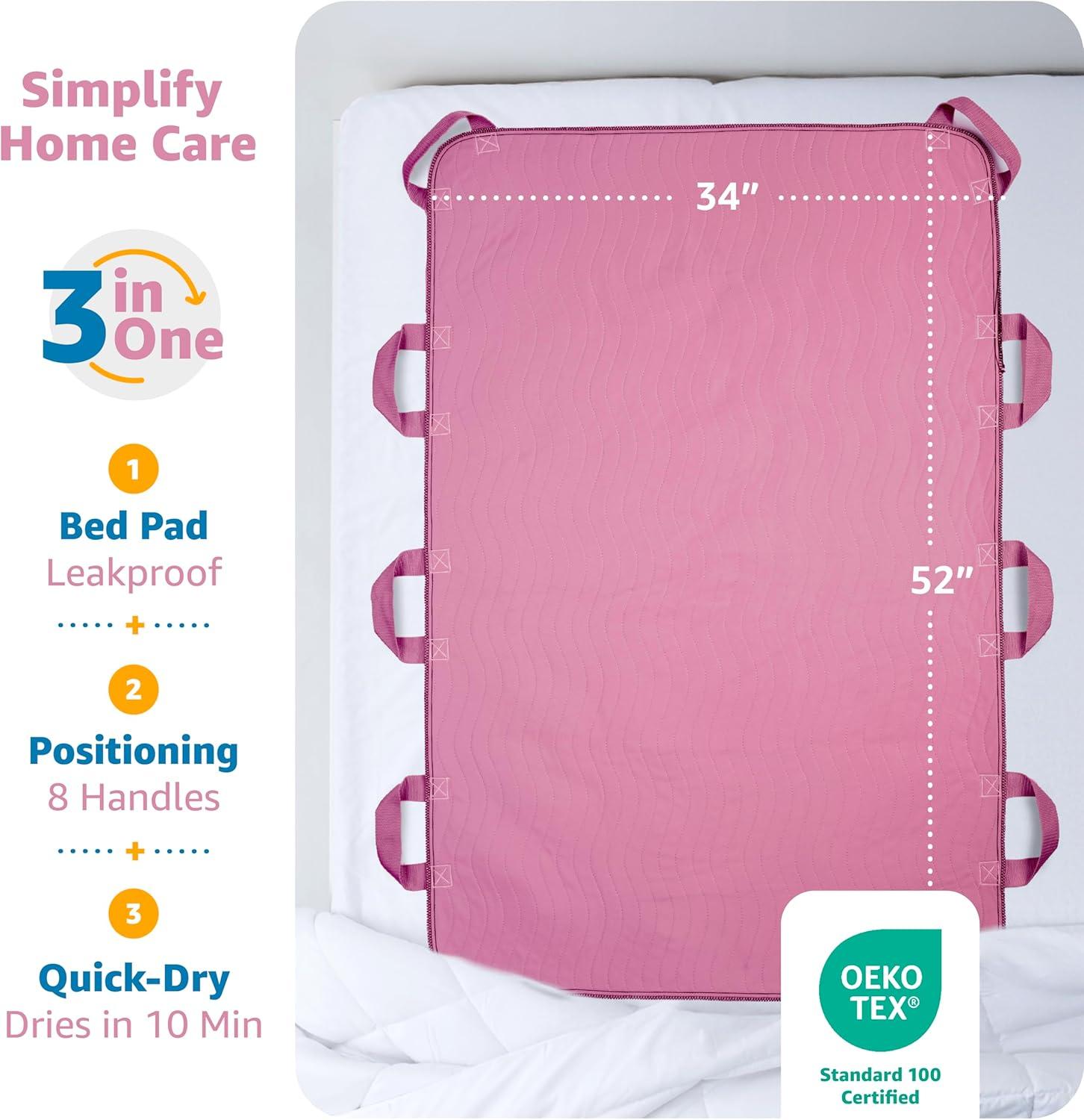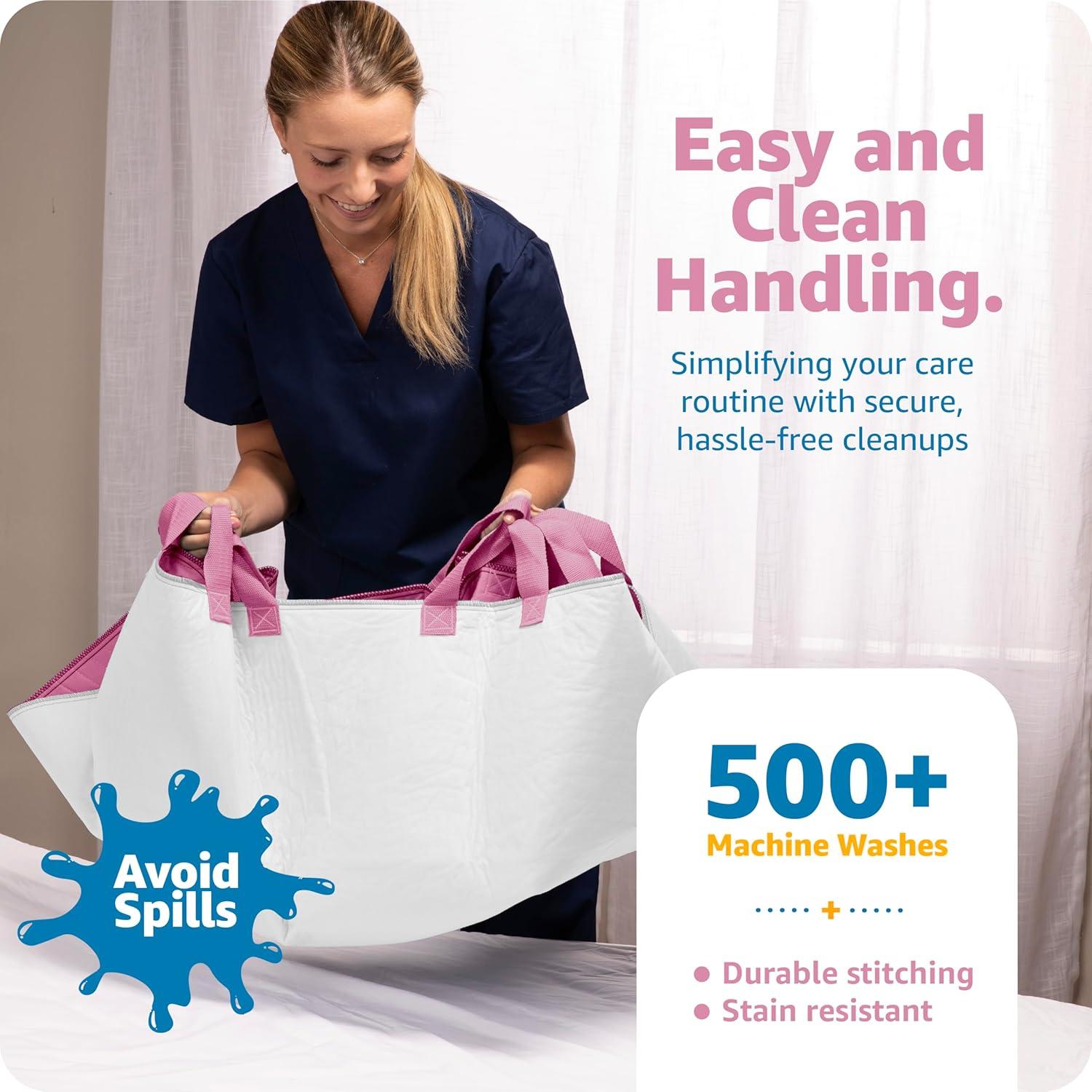 Enhance Your Caregiving CapacityYour bed transfer pad with handles was crafted out of a deep understanding of the challenges faced by caretakers and those they help. Care for those who need it with the utmost empathy and ease thanks to your draw sheet by Improvia. It is more than a product; it's a transformational tool that takes the strain out of daily shifting, transferring, and positioning.Unmatched Comfort and DignityHelp your loved one rest comfortably without worrying about unpleasant moisture, bed sores, or the embarrassment of stains. Your transfer sheet features a nonslip top layer, an innovative quick-dry design, an ultra-absorbent core, and a waterproof bottom.Effortless RepositioningCaregiving can be physically demanding without the right medical supplies for home care. These reinforced handles ensure a secure grip, allowing you to move them with ease and confidence, and reducing the risk of accidents.Eco-Conscious, Compassionate ConstructionYour pad contains no latex and is OEKO-TEX certified, providing a surface that is free of harmful chemicals and gentle for sensitive skin. Unlike disposable bed pads, you can reuse your mat up to 500 times. It holds up to 12 oz. of fluid between washes while remaining dry and delivering peace of mind. It's not just a pad for beds for incontinence in adults; it's a promise of comfort, dignity, and sustainability.Make your caregiving journey smoother with your washable pee pad and positioning sheet by Improvia.