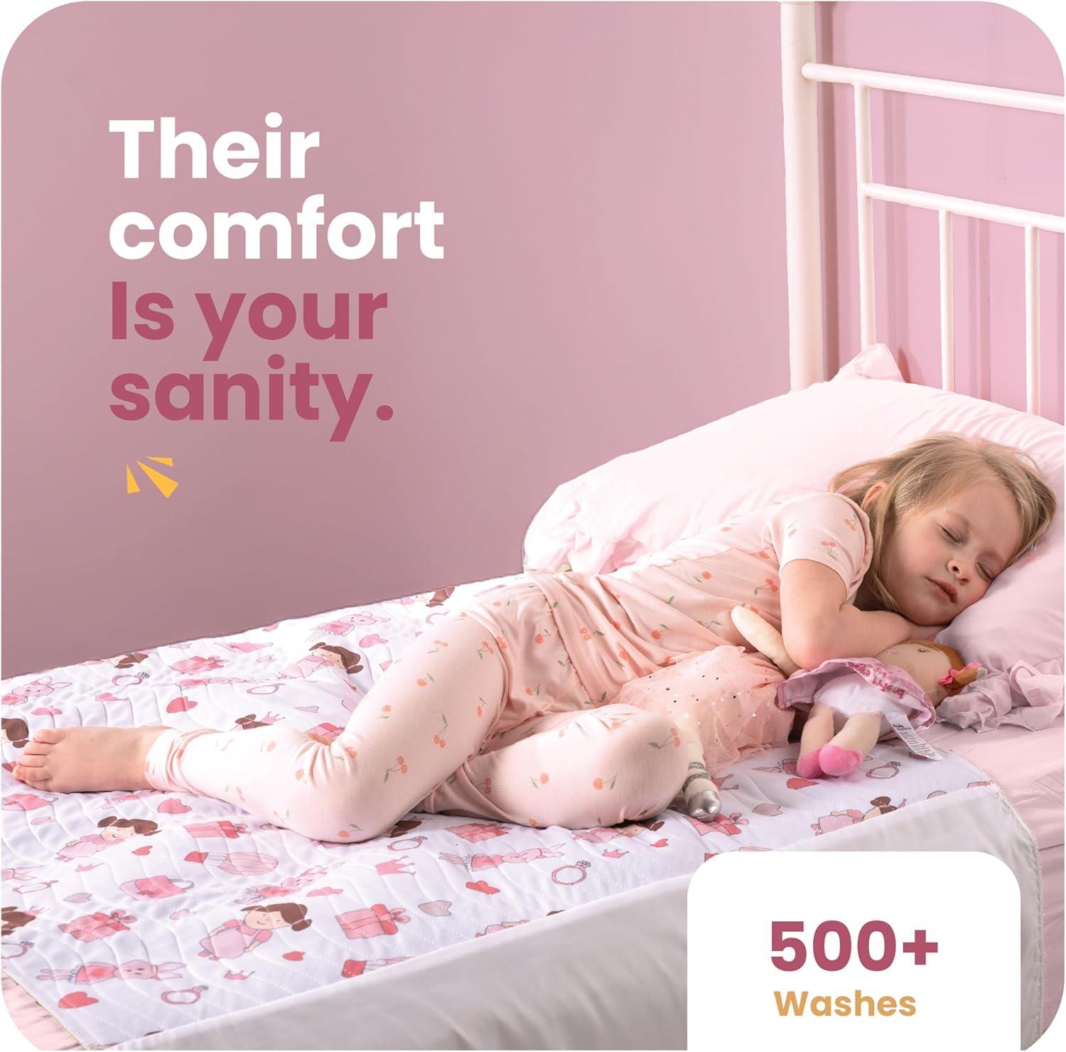 🦄 Ultra Absorbent, Quick-Drying Protection: Our toddler bed pad features a high-capacity soaker layer that locks in liquid and dries fast. Perfect for potty training, it keeps your child comfortable and your mattress protected all night long.