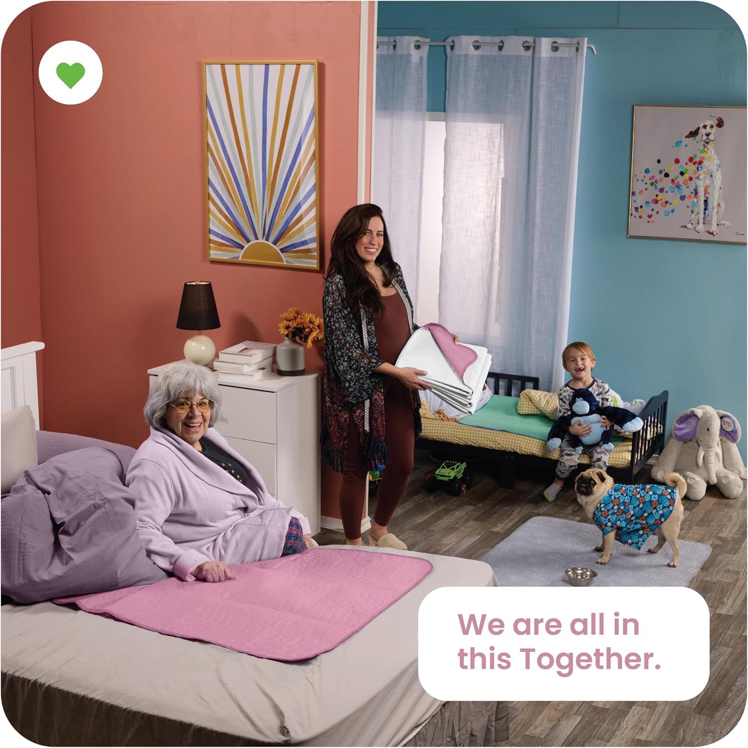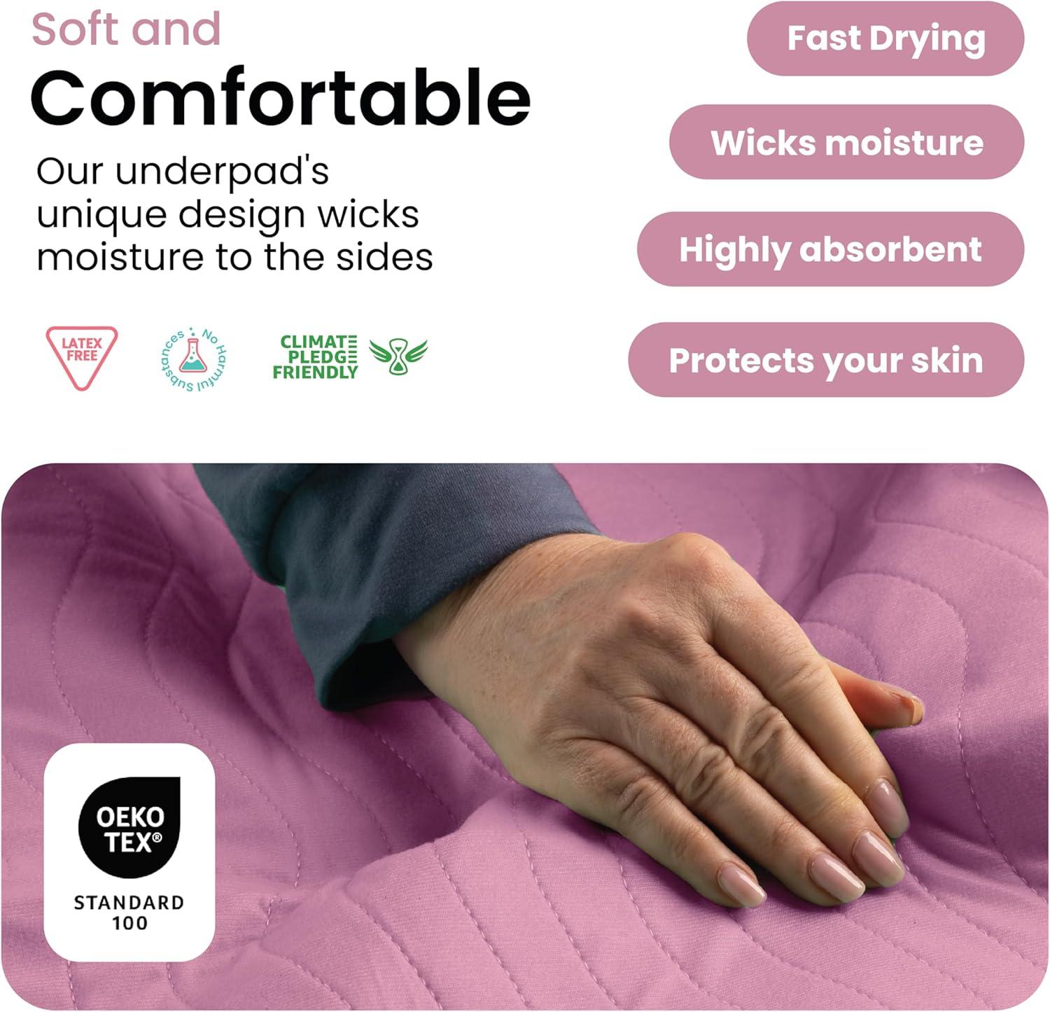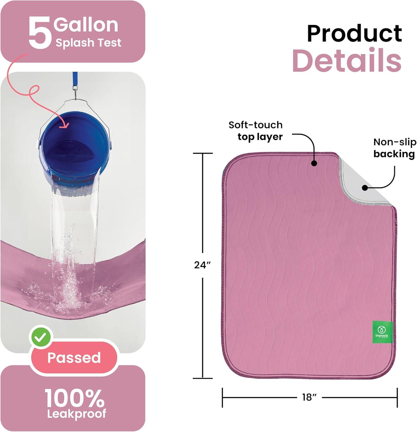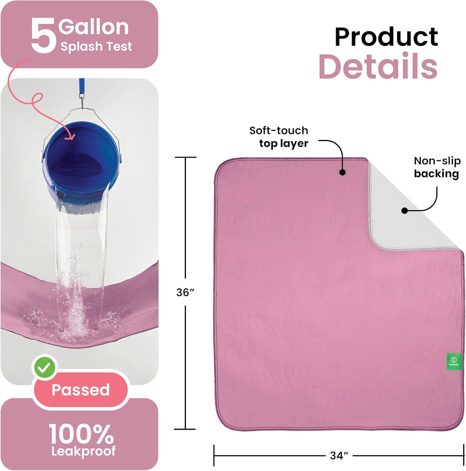 IMPROVIA® Washable Underpads, Heavy Absorbency Reusable Incontinence Pads for Kids, Adults, Elderly, and Pets, Waterproof Protection Floor (Blue and White, 34″ x 36″ – Pack of 4)(Pink)