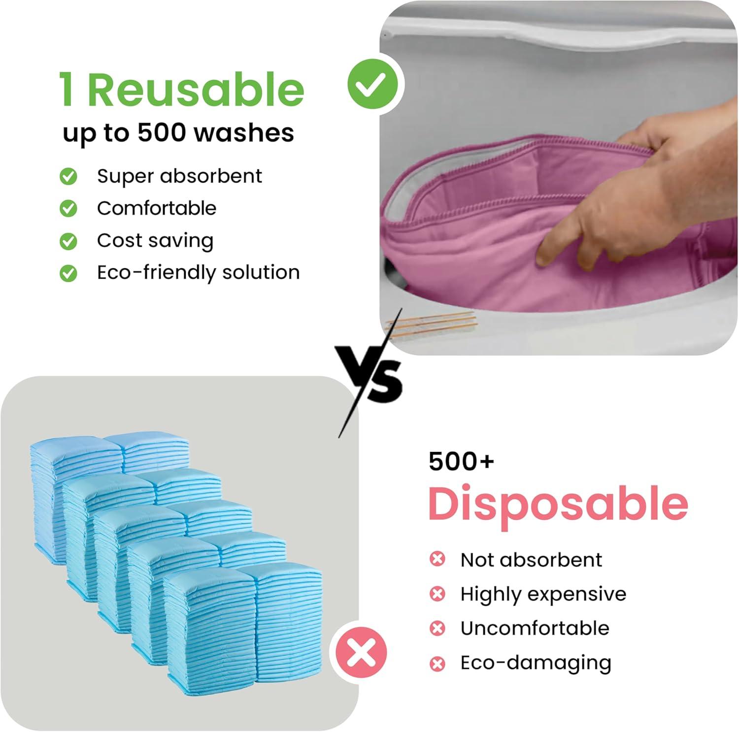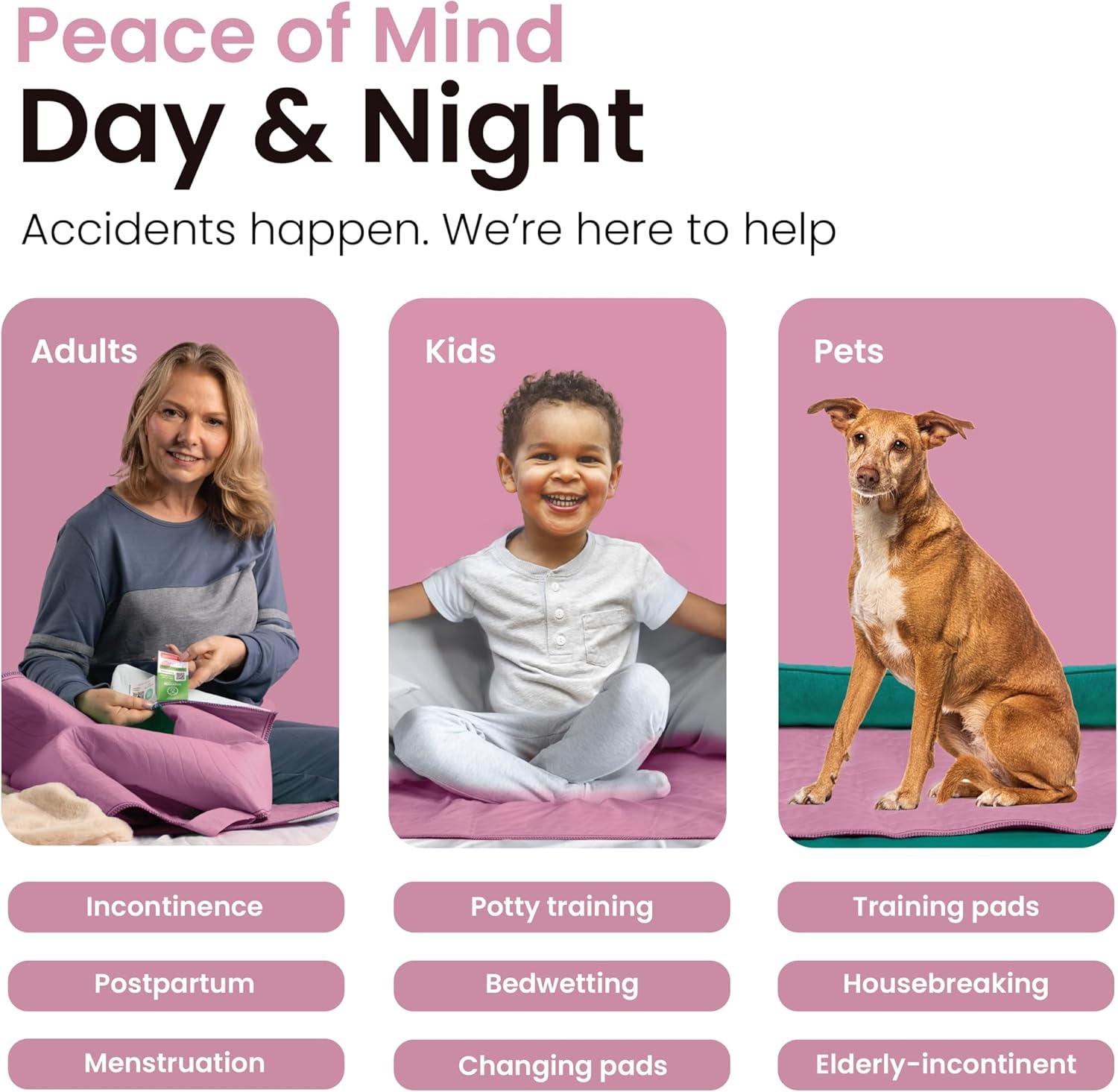 WASHABLE UP TO 500X – With our Reusable Bed Pads, you can get a more comfortable sleep as they stay in the correct position – keeping you and your bed dry all night long! They are 100% Washable and Stain-Resistant – saving you up to 500 Disposable Underpads!
