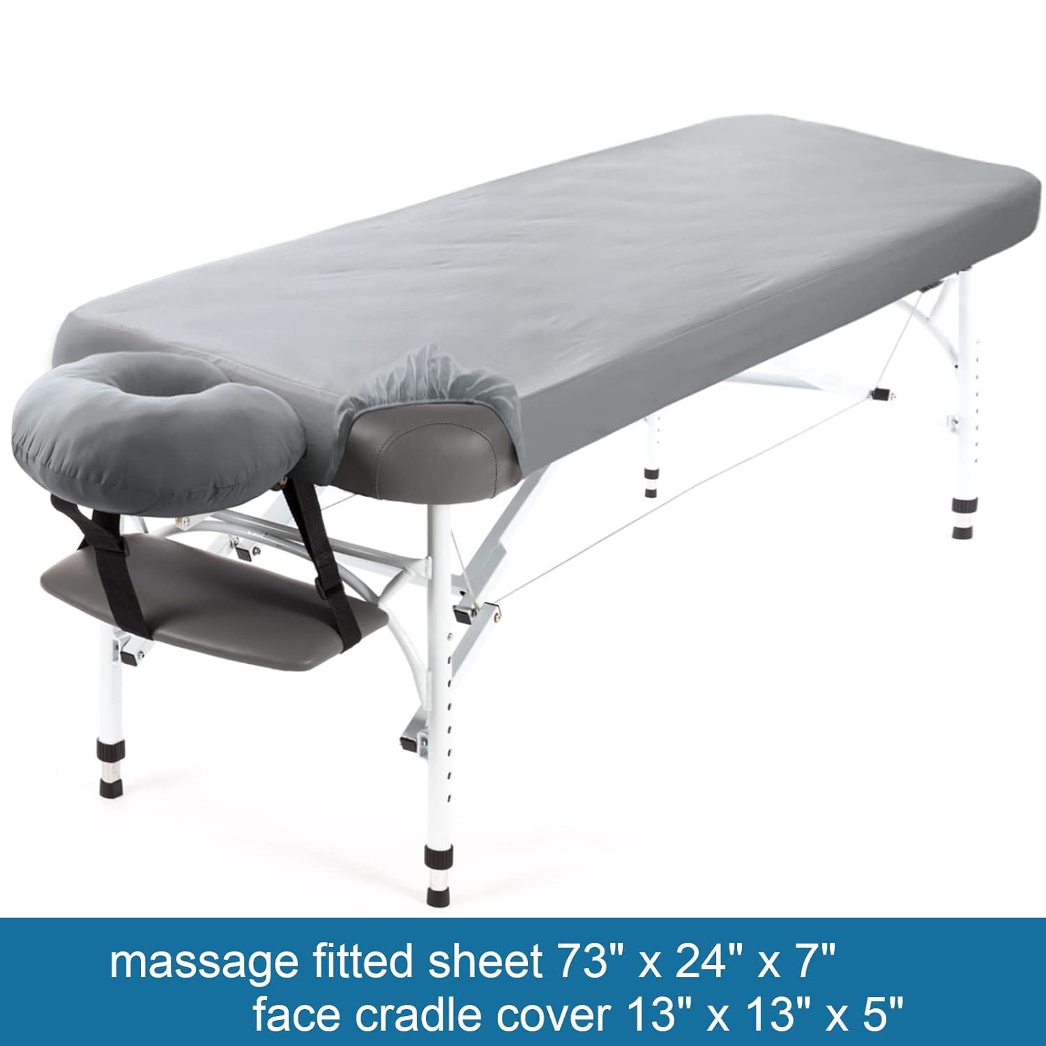【Widely Application & Perfectly Fit】The 2-piece waterproof massage table sheets sets include a massage fitted sheet 73″ x 28″ x 7″ and a face cradle cover 13″ x 13″ x 5″, which fit for most standard massage table including Commercial, Best Massage, Saloniture and ACi massage table.